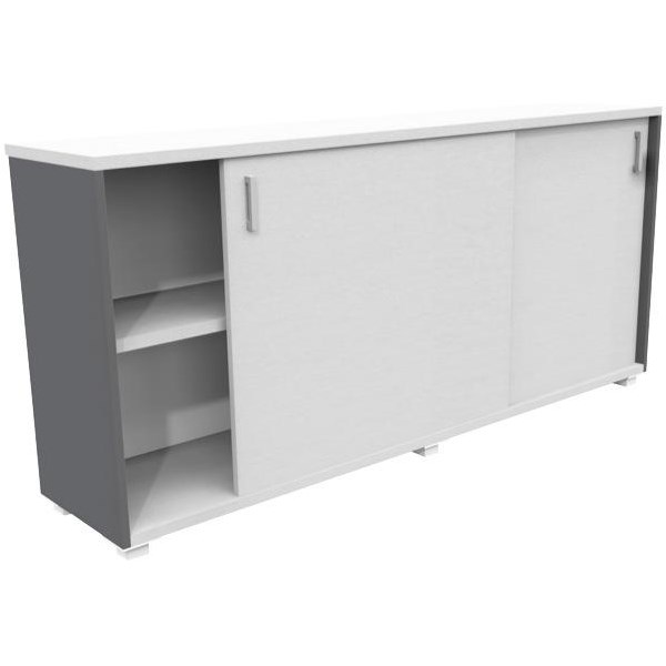 • 1800 wide credenza with sliding doors on square 40mm steel feet