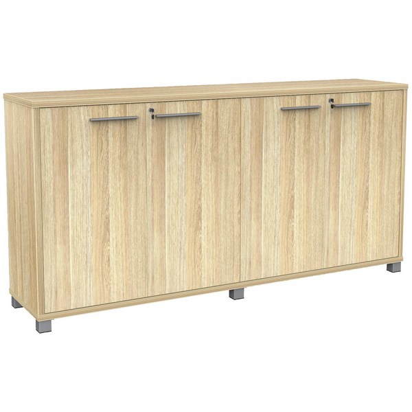 This Cubit Credenza in Atlantic Oak offers 4 lockable hinged doors and 2 shelving units for ultimate storage purposes around the home or within the office. Overall measurements are 1800x450x900mm (wxdxh). This stylish and sleek design will add sophistication to any space.