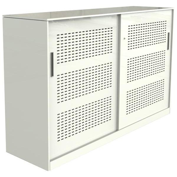•A sturdy steel storage cabinet with sliding doors