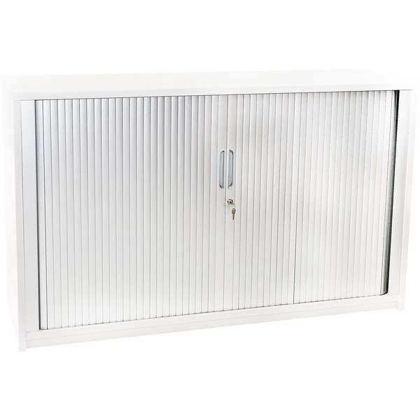 City Tambour Credenza Cupboards offer a stylish design and an effiecient storage solution. The tambour style doors require minimal space for opening and roll back into the cabinet, making them ideal for offices with limited space. This unit has a sturdy Meltecca construction in a Snowdrift white colour and the tambour doors have a silver finish. The doors are lockable ensuring all your personal belongings and work files are secure.