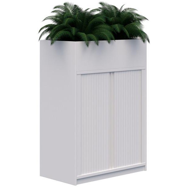 This Mascot Tambour Storage Unit has tambour-style doors that roll open, requiring no additional floor space for opening. It is ideal for storing all your files, documents, stationery and personal iTem. It has 2 adjustable shelves providing plenty of storage space and flexibility in space management. The tambour is constructed from laminated board and doors are white and constructed from durable polymer. The matching planter on top of the unit is ideal for adding live plants, to bring some greenery into offices.