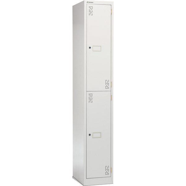 •A satin white 2 tier locker that is ideal for securing all your belongings