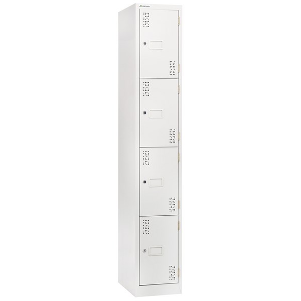 •A satin white 4 tier locker that is ideal for securing all your belongings