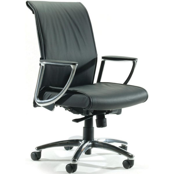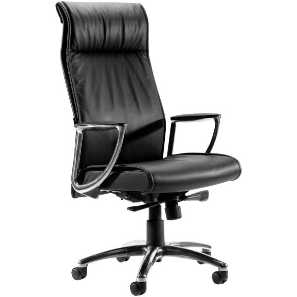 It is a great choice for high profile offices and boardrooms. It is height adjustable with a gas lift. The synchro mechanism allows the seat and back to move in unison and it features anti-whiplash protection which avoids surprises when adjusting the back position. It is upholstered with soft premium black leather and has an adjustable lumbar support which provides all day comfort.