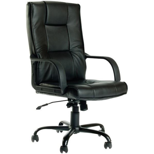 This Falcon Executive Chair has a high back and built-in arms for user comfort. The Black PU upholstery is soft and looks like leather but doesn't require the hassle and maintenance of genuine leather. It has a sturdy steel base which is powder coated to the same colour as the upholstery. The gas lift allows you to adjust your seat height and the infinite lock mechanism allows you to lock the back reclining position at any angle.