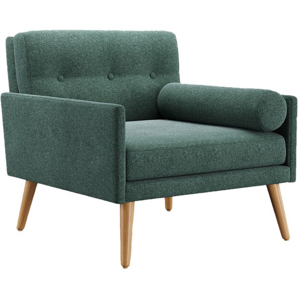 The Frankie Single Seater Sofa is a stylish and sophisticated chair suitable for both commercial and domestic use. It can be used as a waiting room chair, an occasional chair, or as part of a lounge suite in a breakout area. The sofa is upholstered in Warwick Hawthorn Forest fabric with Halo treatment for spot cleaning. It measures 820x830x780mm (wxdxh) and it has clear-finish timber legs. The sofa is filled with elephant foam for durability and comes with 1 bolster cushion.