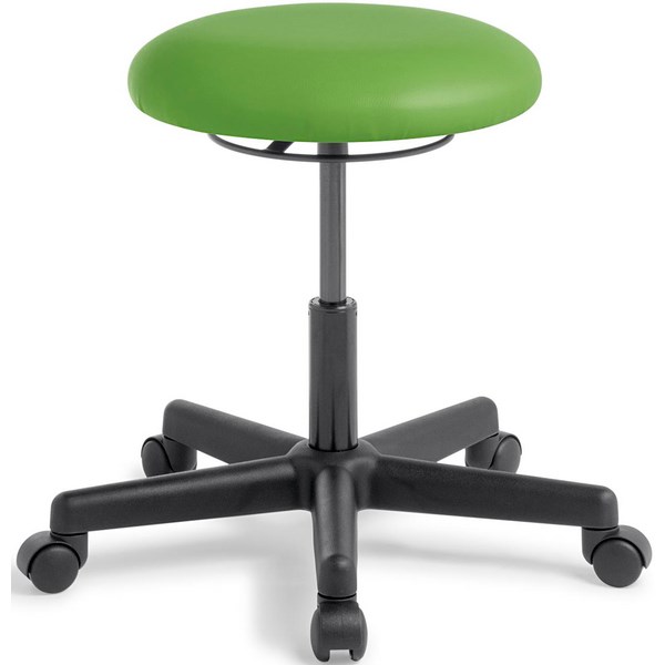 Button Stools are a simple and comfortable seating option that are suitable for use in a variety of situations. It is height adjustable and features a standard height gas lift. The comfortable 400mm diameter seat is upholstered with durable Lustrell Charisma Vinyl in Kiwi. The sturdy 5 star base has castors for easy mobility. The easy-reach gas lift lever can be easily adjusted from any position on the seat. It is an ideal choice for student, medical and industrial workspaces.