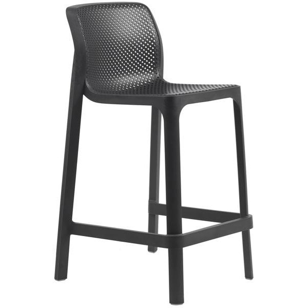 The Charcoal Net Kitchen Stool is a uniformly coloured mono-bloc stool made from outdoor safe fiberglass & polypropylene resin stool with UV additives. It has a matte finish, non-slip foot properties and is water-resistant to atmospheric pollutants, fading, harsh UV light and rust. The stackable stool has a unique square perforation pattern that is not only stylish but also promotes water runoff. Overall dimensions measure 485x510x900mm (wxdxh) with a seat height of 650mm. Designed to be used with a standard kitchen counter at 900mm high.