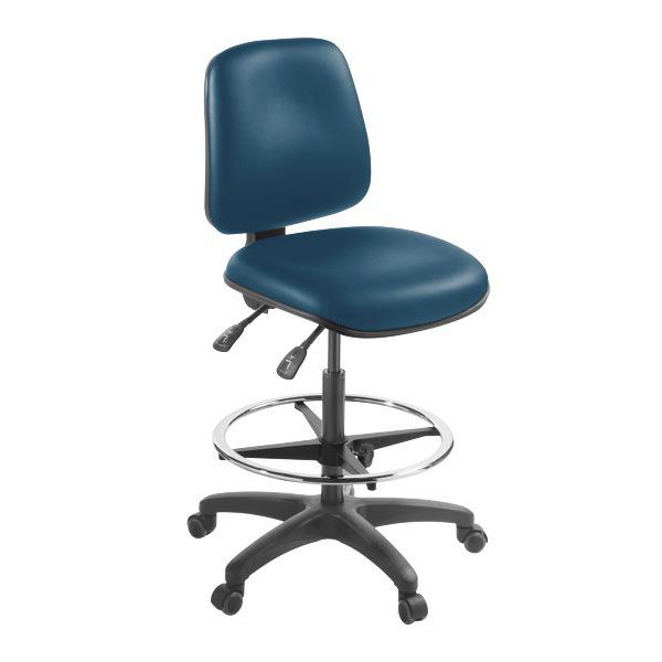 This Eden Office Chorus 2.40 Highlift Task Chair with high back is perfect for high work surfaces, leaner tables, drafting tables, industrial spaces, labs and the office. The versatile chair features a gently contoured seat and significant lumbar support for comfort as you work. The 2 lever mechanism allows you to adjust seat height, back height and back angle to give you the support you need. Footring provides additional support as you work. Upholstered in antibacterial and antimicrobial Charisma vinyl.