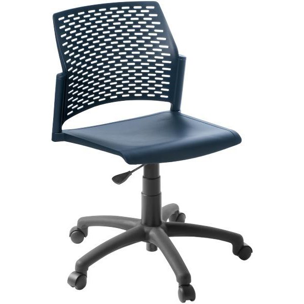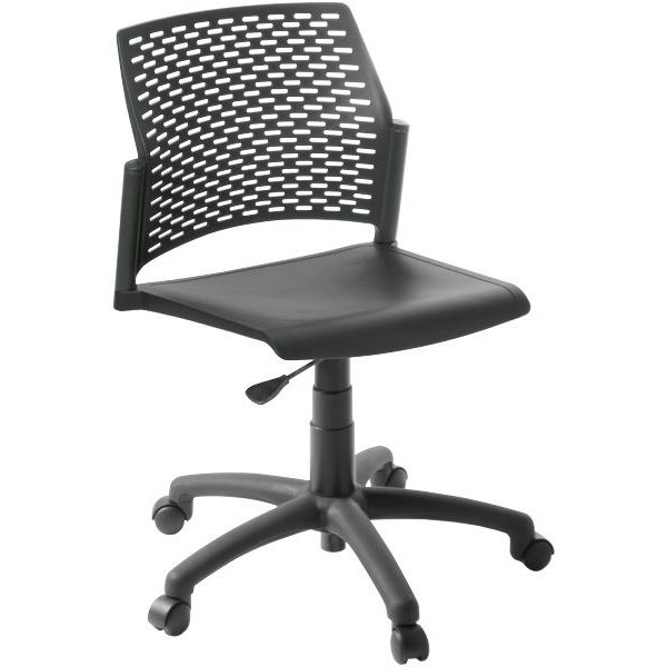 The Punch Swivel Task Chair is a heavy duty community seating solution and is ideal for use in the office, home office, meeting rooms, conferences, and more. It features a fashionable perforated backrest, generously-sized polypropylene back and seat, as well as a 5-star swivel base and gaslift height adjustment. The chair is 620mm wide and has a stylish black frame.