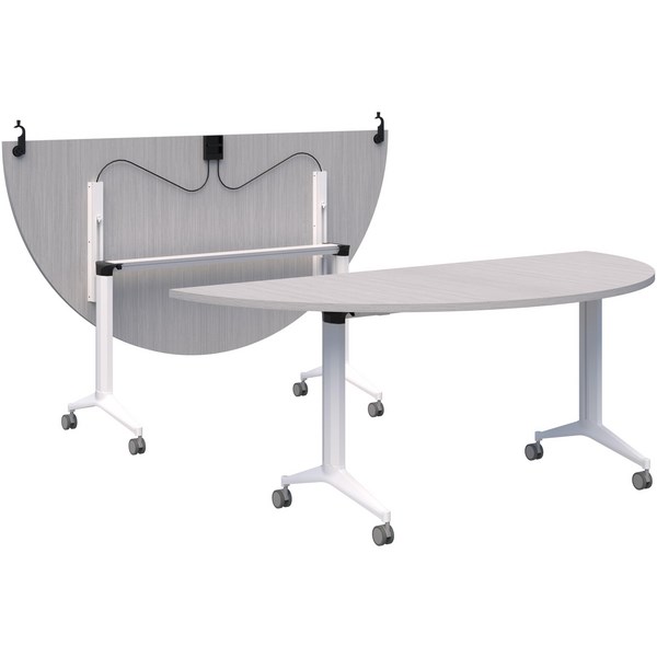 The Boost Semi-Circle Flip Table is a foldable, mobile table with lockable castors, designed for meeting or training rooms. It features a simple flip mechanism that is smooth and easy to use and can be easily joined with connectors.