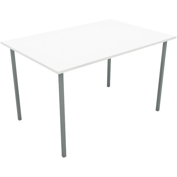 Canteen Table 1200x600mm 50mm Square Silver Legs Snowdrift White