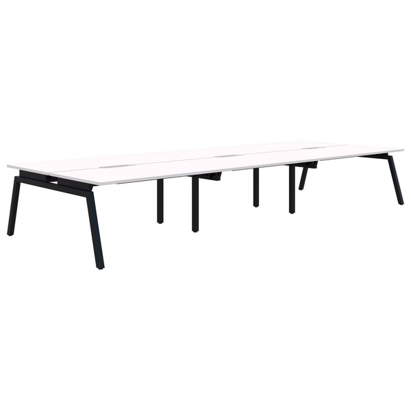 This Accent Balance Angle 6 Pod Desk has a sleek, modern design that will complement any office environment or workspace. It has a powder-coated steel frame for strength and durability and a minimalist aesthetic that will work seamlessly with existing furniture items. The desk has an integrated cable tray to reduce clutter and a cable scallop for easy access to cables when required.