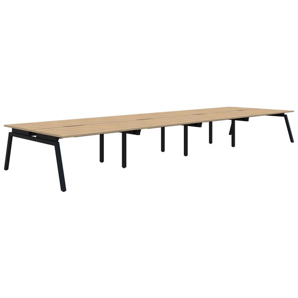 This Accent Balance Angle 8 Pod Desk has a sleek, modern design that will complement any office or workspace. It has a powder-coated steel frame for strength and durability and a minimalist aesthetic that will work seamlessly with existing furniture items. The desk has an integrated cable tray to reduce clutter and a cable scallop for easy access to cables when required.