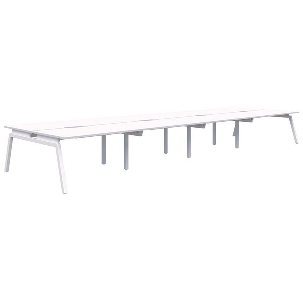 This Accent Balance Angle 8 Pod Desk has a sleek, modern design that will complement any office or workspace. It has a powder-coated steel frame for strength and durability and a minimalist aesthetic that will work seamlessly with existing furniture items. The desk has an integrated cable tray to reduce clutter and a cable scallop for easy access to cables when required.