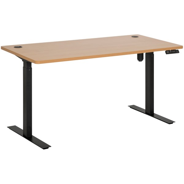 •An electric height adjustable desk with a single 2 stage motor and a beech melamine worktop