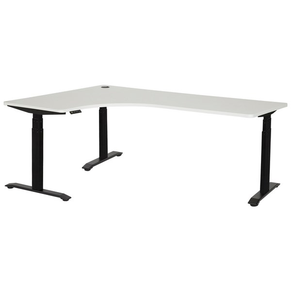 This Amplify Electric Workstation is a corner desk with a great practical design. Its height adjustable feature allow users to switch between sitting and standing for comfort. With a built-in cable port, wires from electric devices can be kept safe and tidy. The desk top has a melamine finish with ABS edging which is durable and easy to clean. Built in levelling glides are installed to keep the desk steady and prevent wobble.