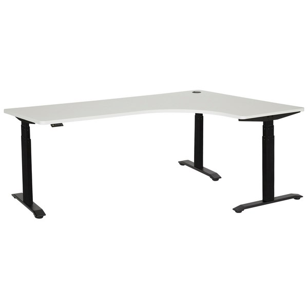This Amplify Electric Workstation is a corner desk with a great practical design. Its height adjustable feature allow users to switch between sitting and standing for comfort. With a built-in cable port, wires from electric devices can be kept safe and tidy. The desk top has a melamine finish with ABS edging which is durable and easy to clean. Built in levelling glides are installed to keep the desk steady and prevent wobble.