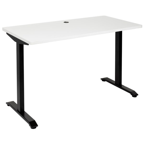 Enjoy a practical modern workstation with this Amplify Straight Desk. It is made up of a melamine top with ABS edging built on a solid steel frame. There is a built in cable port to keep your wires tidy and out of harm's way. The desk has height adjustable feet to ensure stability on all types of floor surfaces and prevent wobbling.