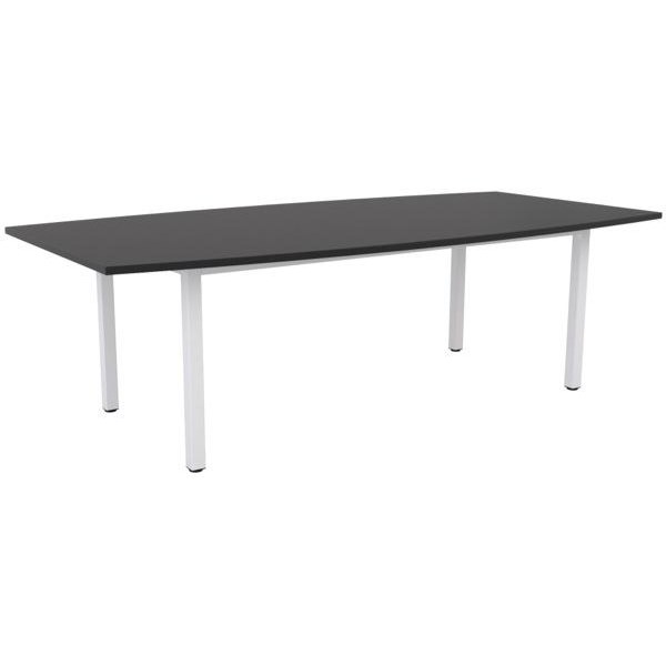 This Cubit Boardroom Table has a unique boat-shaped design. The boardroom table features a commercial grade 25mm top with a melamine finish and 2mm PVC edging. The sturdy steel legs are square 50mm tubes with a durable powder coated finish. The 2400mm table is ideal for boardrooms and meeting rooms and the shape allows all users a view of each other due to the tapered ends.