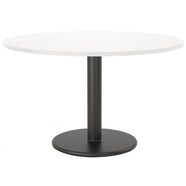 This Cubit Meeting Table has a stylish design and a sturdy construction. It has a round 25mm white top and a round steel base with a black powder coated finish. It is ideal for use in meeting rooms, canteens, offices and collaboration spaces. The simple, classic design will complement and space.