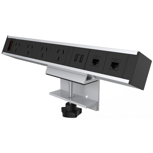 The Powerboard is designed to fit into the centre of your desk, providing a convenient and accessible power source. It features 4 general purpose outlets, 2 USB ports, and 2 data ports, making it ideal for keeping your devices charged and connected.
