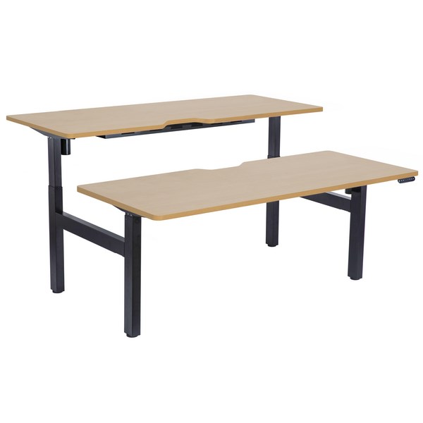 This Emerge Electric Height Adjustable 2 User Desk allows you to easily move between sitting or standing position and its back-to-back design is a perfect solution to maximize office space. It has a sturdy construction and a modern design that will complement any office space. The steel base has a powder coated finish and each scallop desktop has a melamine finish with rounded corners and is finished off with solid 2mm ABS edging which is durable and easy to clean.