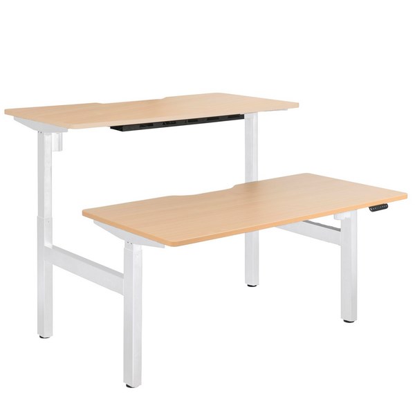 This Emerge Electric Height Adjustable 2 User Desk features a stylish and high performing setup. They use high-end componentry for ease of use and reliability. The back to back design is a perfect solution to maximize office space. The white steel base is powder coated and the desktop has a white melamine finish and rounded corners with solid 2mm ABS edging which is durable and easy to clean.