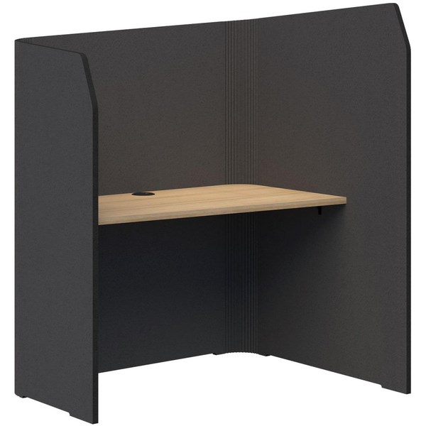 This Sonic Focus Pod is lightweight and movable, designed to give you privacy and keep you focused. It is engineered to fit dual 24 inch monitors. The high return wall shields users from distractions, while the angled desktop enhances privacy and acoustic performance. Great for offices, coworking spaces, and home setups.