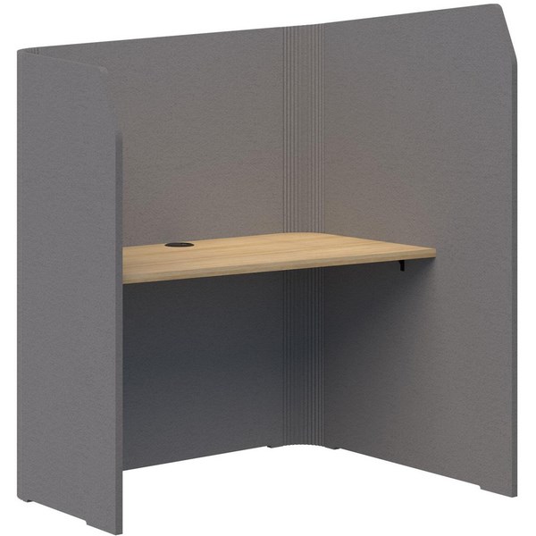 This Sonic Focus Pod is lightweight and movable, designed to give you privacy and keep you focused. It is engineered to fit dual 24 inch monitors. The high return wall shields users from distractions, while the angled desktop enhances privacy and acoustic performance. Great for offices, coworking spaces, and home setups.