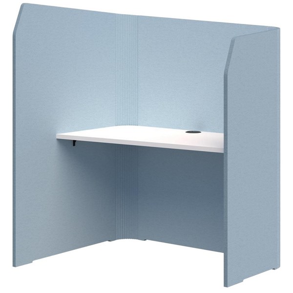 This Sonic Focus Pod is lightweight and movable, designed to give you privacy and keep you focused. It is engineered to fit dual 24 inch monitors. The high return wall shields users from distractions, while the angled desktop enhances privacy and acoustic performance. Great for offices, coworking spaces, and home setups.