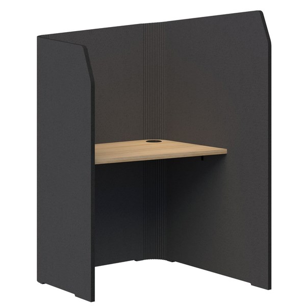 The Sonic Mini Focus Standup Workpod is perfect and easy to quickly move into for a stand-up phone or video call. You can also use your laptop for extended periods, and can fit 1x monitor of up to 27". The angled desk top allows maximum privacy and acoustic performance. The high return wall enables users to be free from distractions.