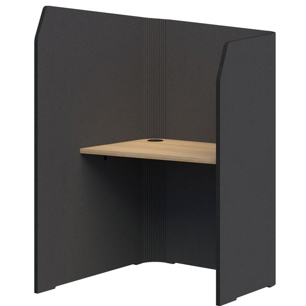 The Sonic Mini Focus Standup Workpod is perfect and easy to quickly move into for a stand-up phone or video call. You can also use your laptop for extended periods, and can fit 1x monitor of up to 27". The angled desk top allows maximum privacy and acoustic performance. The high return wall enables users to be free from distractions.