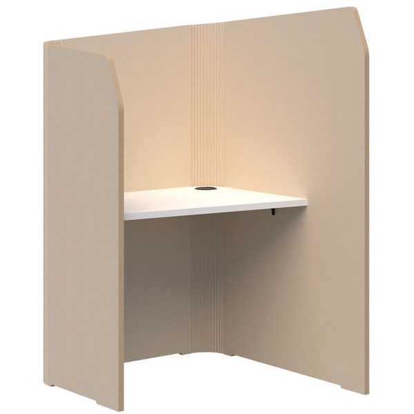 The Sonic Mini Focus Standup Workpod is perfect and easy to quickly move into for a stand-up phone or video call. You can also use your laptop for extended periods, and can fit 1x monitor of up to 27". The angled desk top allows maximum privacy and acoustic performance. The high return wall enables users to be free from distractions.