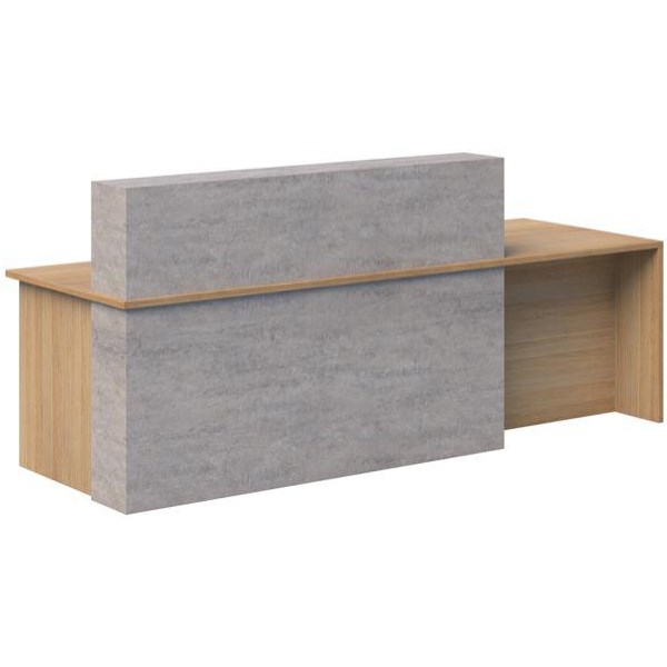 With its counter front and contemporary style, the Block Reception with wheelchair access is a versatile reception unit ideal for any workplace. It features a counter front with a Concrete Look Melamine construction and mitred edges. The desk is made from 25mm Classic Oak Melteca, provides wheelchair access on the right and features a handy cable port to help keep your workspace neat and tidy. Pair it with a Block reception return to create a corner desk.
