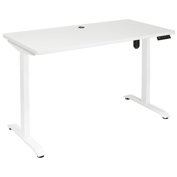 Enjoy a practical modern workstation with this Amplify Single Motor Height Adjustable Desk. It allows you to switch between sitting and standing providing ergonomic comfort while you work. For convenience there is a USB/USB C port for charging devices and a built in cable port to keep your wires tidy and out of harm's way. The desk has a melamine top with ABS edging built on a solid steel frame to ensure durability and long lasting use.