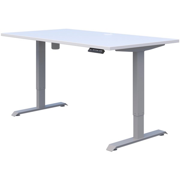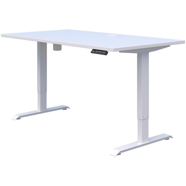 Duo II Height Adjustable Desks are electrically controlled with a programmable controller with an LCD display for convenience. It has a sturdy powder coated steel frame and a durable 25mm Melteca top with 2mm PVC edging in a Snowdrift white colour. This handy desk allows users to change from sitting to standing quickly and easily and is ideal for office use.