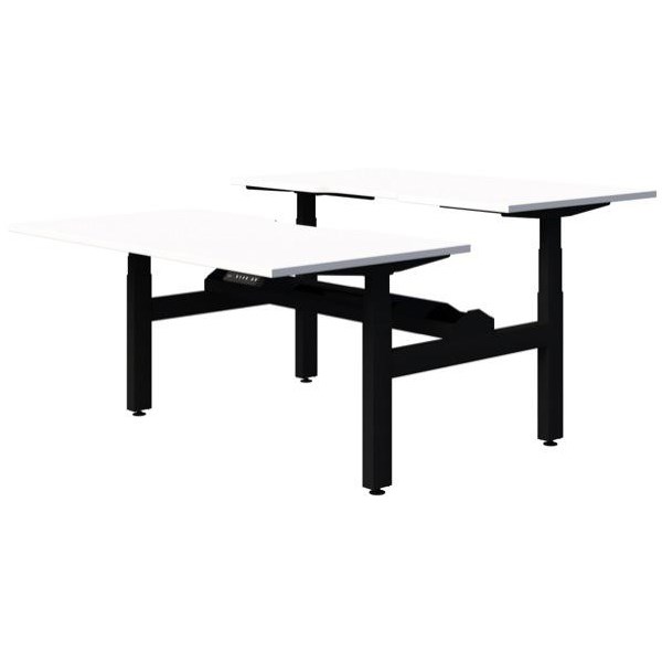 This Fiord Electric 2 Pod Height Adjustable Desk is a back to back, ergonomic solution that allows you to work sitting or standing. The desks feature simple electric height adjustment with a height range of 620-1270mm. The electric desks have an easy to use LCD display that can be programmed to three height settings to conveniently set the desk to your preferred height. The desks have anti-collision technology, height locking features and a 55x400mm cable scallop . Enjoy a greater range of movement as you work with these convenient, contemporary desks.