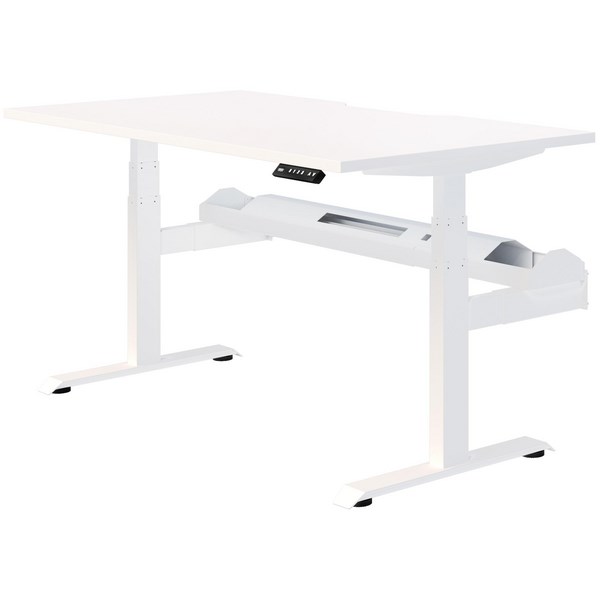 •Single user electric desk with Snowdrift top and a White powder-coated frame