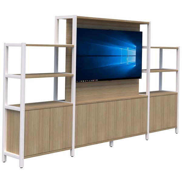 This Grid 40 TV Open Display Wall Unit is a great filing and display solution for the modern office or workspace. Incorporate a TV screen or whiteboards for interactive displays or team meetings. This display unit is excellent for creating separate zones in open plan spaces while maintaining light and visibility. It features cupboards for storing and filing items out of sight while the open shelves are ideal for storing files and books or for displaying photo frames, home décor, knick knacks, and more. In today’s workspaces, many businesses are looking for ways to create different zones in open plan areas without building permanent walls. Grid 40 solves this problem, with its multi-purpose design offering the solution to a host of workspace needs all in one system. This wall display unit has a stylish design which can be coordinated with other items in the Grid 40 furniture range. With the Grid 40 you can configure your own feature storage, planter wall, or workspace zone divider using the Grid 40’s frame and storage components so you can easily create a themed workspace and to your specific design and needs. The Grid 40 system has 3 different frame heights and 8 different infill modules allowing you to create the solution that is perfect for your needs. The system is also completely reconfigurable and can be dismantled and re-assembled at any time if your needs change.