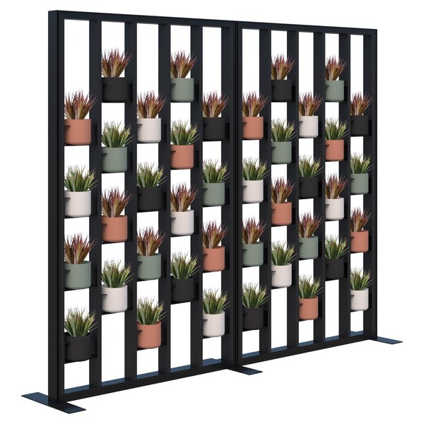 Add an attractive feature or simply create individual zones without building permanent walls within the office, work, school or at home with this stylish Connect Freestanding Plant Wall Including Artificial Plants Room Divider. This modern divider allows partial visibility and light transfer, and the freestanding feet allow this screen to be placed anywhere at any time. A simple kit of parts allows you to reconfigure as your needs change. The layout of this divider comprises of 2 x Plant Wall modules complete with 40 multi-coloured pots, inserts and artificial grasses. The artificial plants allow you to bring some calming greenery into your workspace. The artificial grasses can be swapped out at any time for real plants without the need to change pots.
