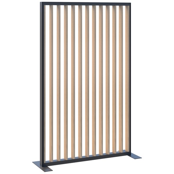 This stylish Connect Freestanding Straight Fin Room Divider segregates rooms while adding an attractive feature within the office, work, school or home environment. The classic oak style with black frame allows partial visibility and light transfer, and the freestanding feet allow these screens to be placed anywhere at any time. The frame, endcaps and feet are made from durable powder-coated aluminium, and the fins are manufactured from 25mm melteca (Melamine).