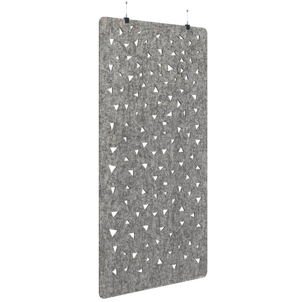 This Fiord Acoustic Hanging Screen is stylish way to divide up your office space and to provide sound absorption and improve acoustics. The screen is made from industrial grade polyester fibre and has an NRC (Noise Reduction Coefficient) of 0.41. It comes with a hanging kit to allow the screen to be suspended from the ceiling.