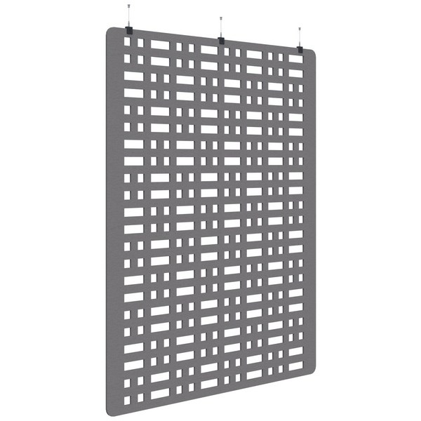This Fiord Acoustic Hanging Screen is a stylish way to divide up your office space and to provide sound absorption and improve acoustics. The screen is made from industrial grade polyester fibre and has an NRC (Noise Reduction Coefficient) of 0.41. It comes with a hanging kit to allow the screen to be suspended from the ceiling.