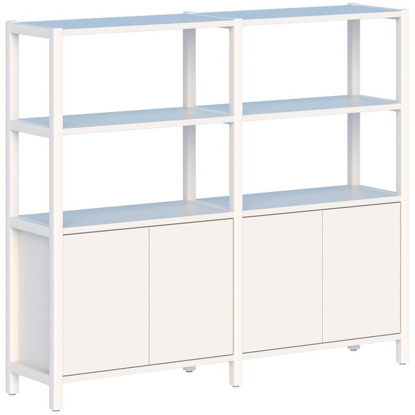 Improve your workspace with this 2 pod Grid 40 shelving unit with 4 shelves and 2 cupboards. With an aluminium frame, Melteca storage and shelf components this shelving unit is not only functional but also attractive. The lower cupboards have 2 hinged doors with push to open catches and one adjustable shelf. A great way to create a divide between work zones for privacy plus the modular designs allows for future reconfiguration.