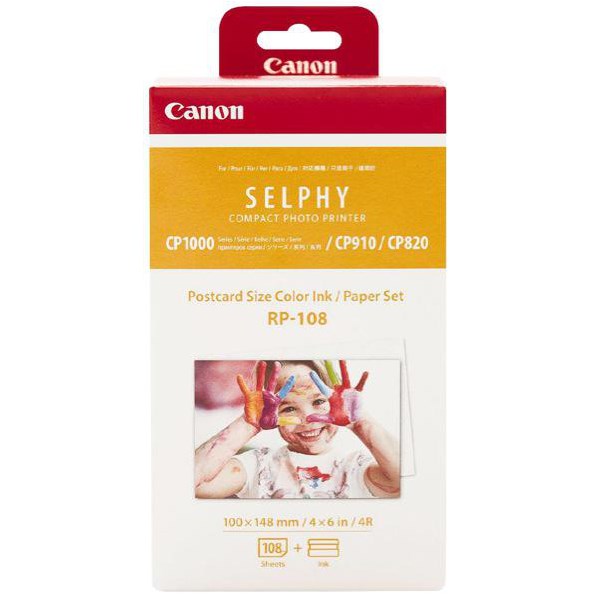 This Canon RP108 pack contains a handy supply of colour ink and 4x6 inch postcard paper for use with the Canon Selphy CP1300 Printer. Create beautiful images and bring memories to life, great for use in scrapbooks and photo albums. Each high-capacity ink cartridge allows users to load up to 54 sheets of paper at once.