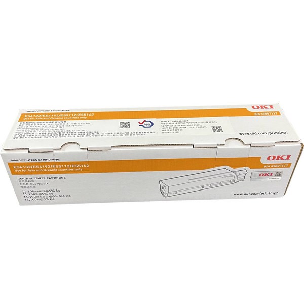 This OKI black toner cartridge is compatible with ES4132, ES4192, ES5112 and ES5162 model printers. It has a yield of 12,000 pages.