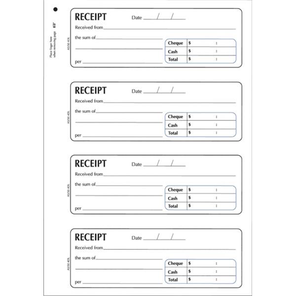 •Four receipts per page
