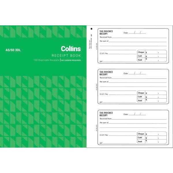This Collins A5/50 3DL NCR Duplicate Receipt Book is a self-carbonating cash receipt book from Collins. The duplicate receipt book enables you to give one copy to your customer and to keep one for your records. The receipt book has space for six figure numbering.