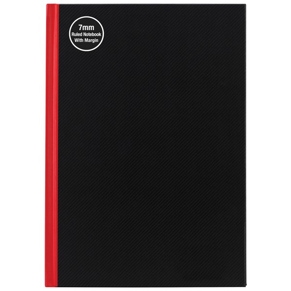 Elegant yet tough, the Milford A4 Hardcover Notebook features a stylish hardcover in black with red binding. Ideal for use at work, home or school, the book is made up of 200 pages of 68gsm white paper. Each page has 7mm ruled lines with a 23mm wide red margin running down the left side.